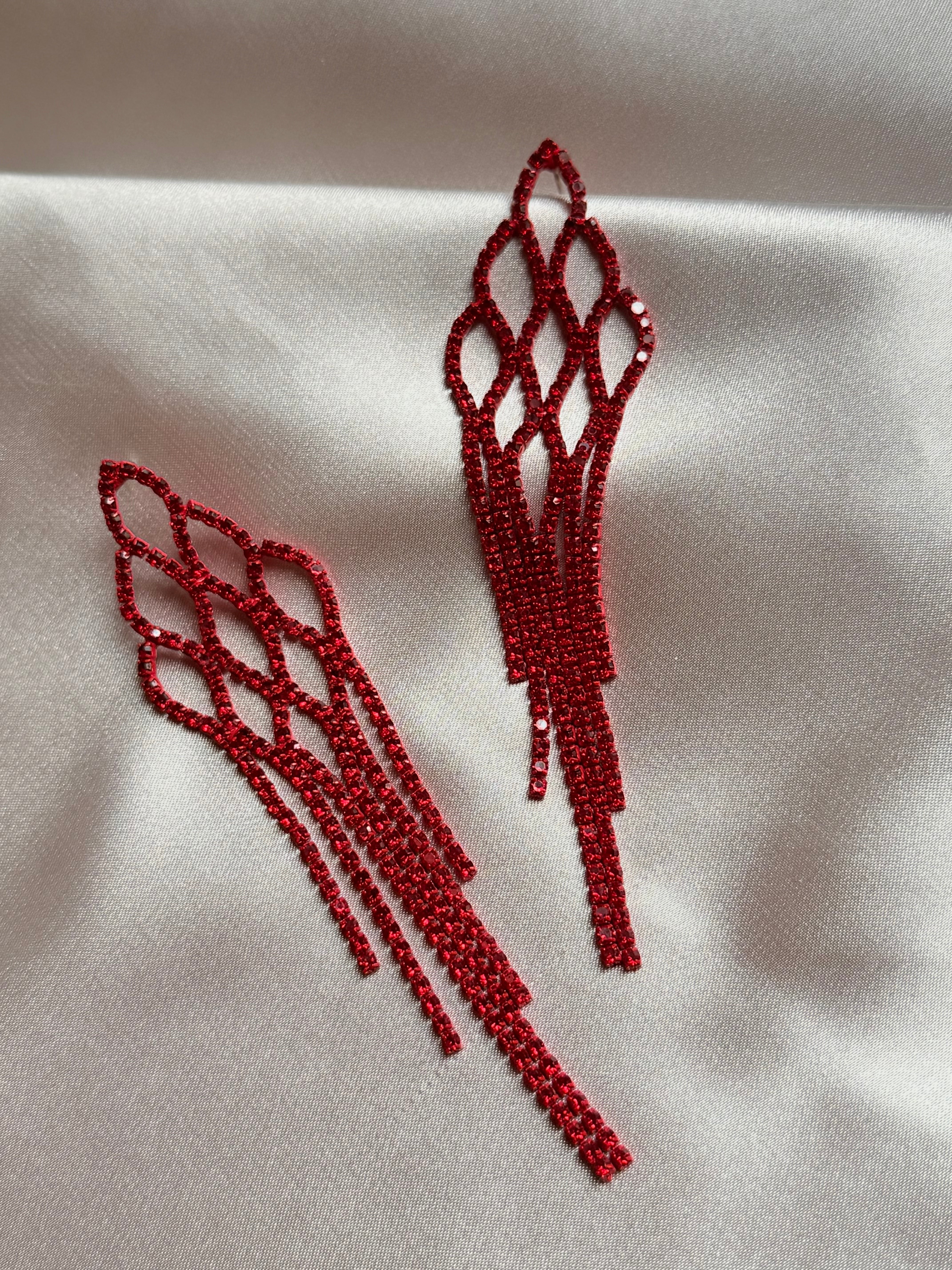 Rhinestone Embellished Mesh Earrings Puffed Up Style Dazzling Long Water Earrings