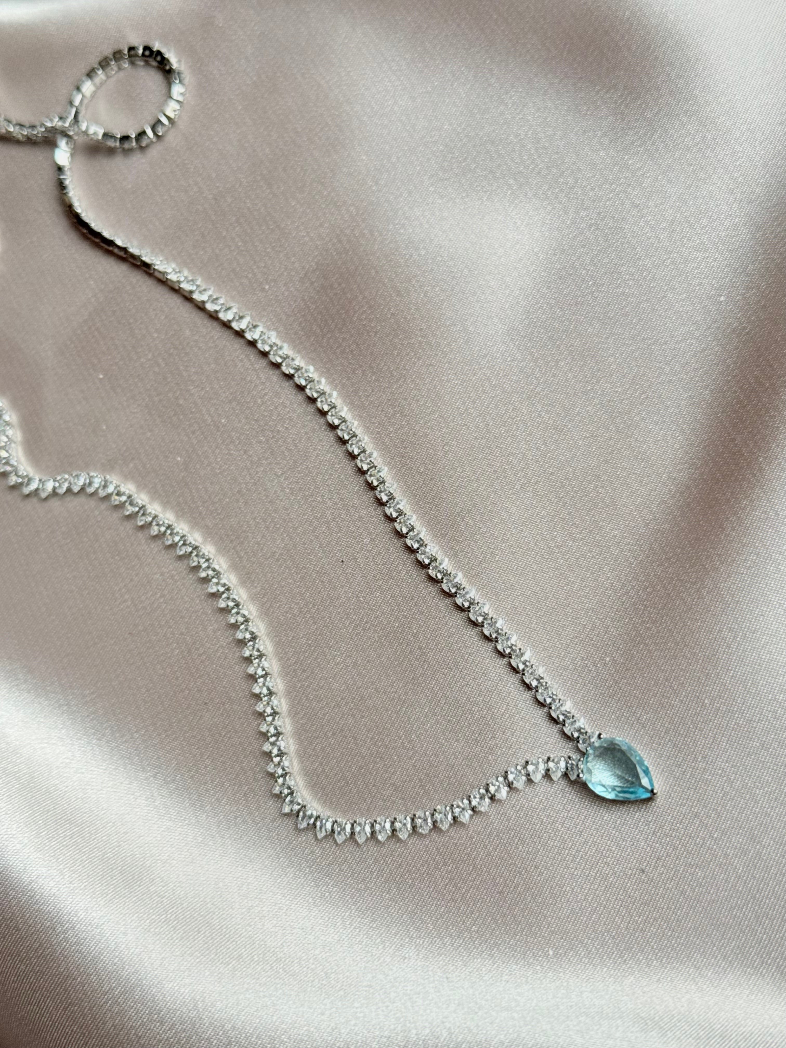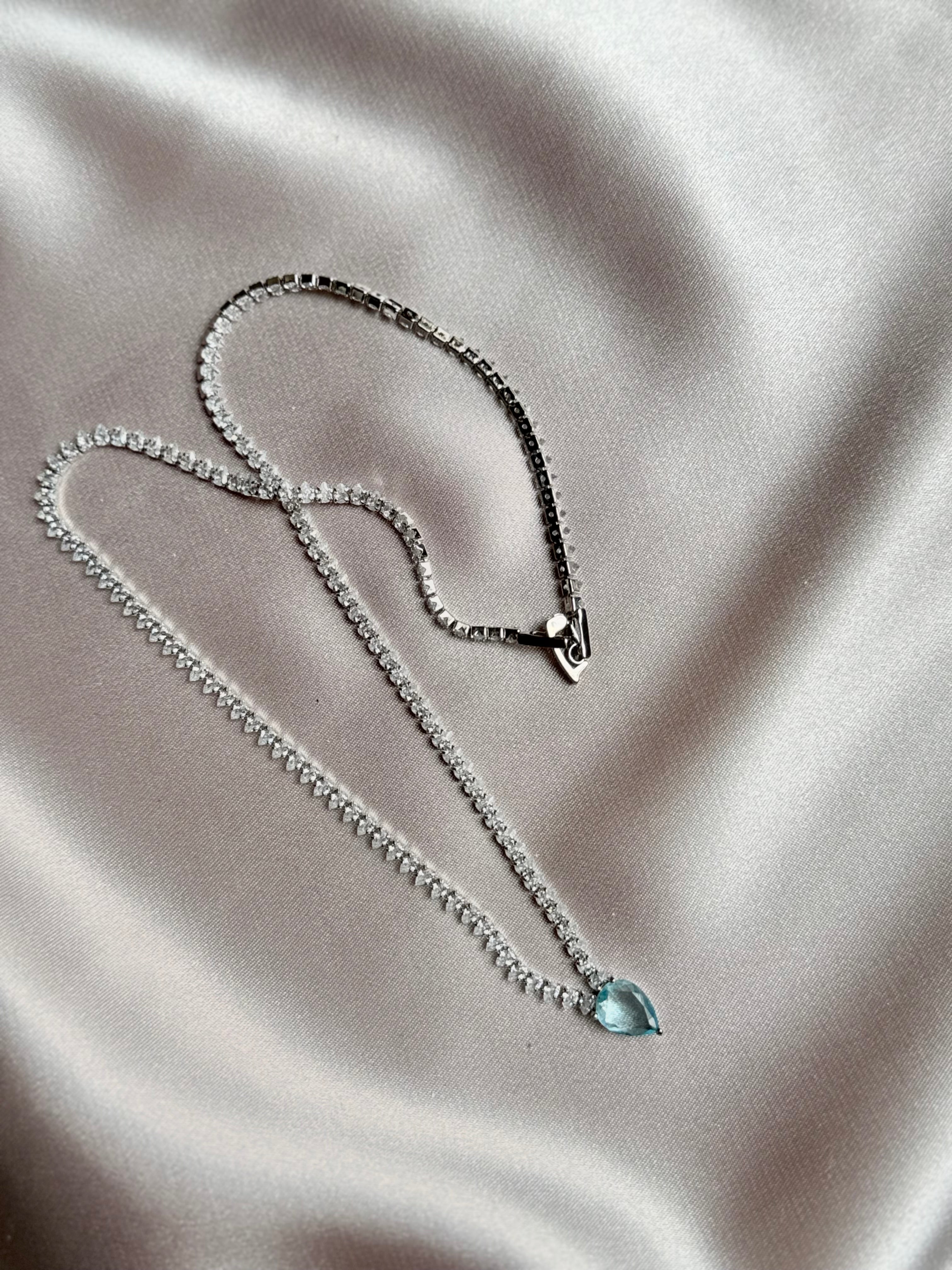 Luxury Elegant Big Light Green Water Drop CZ Crystal Necklace