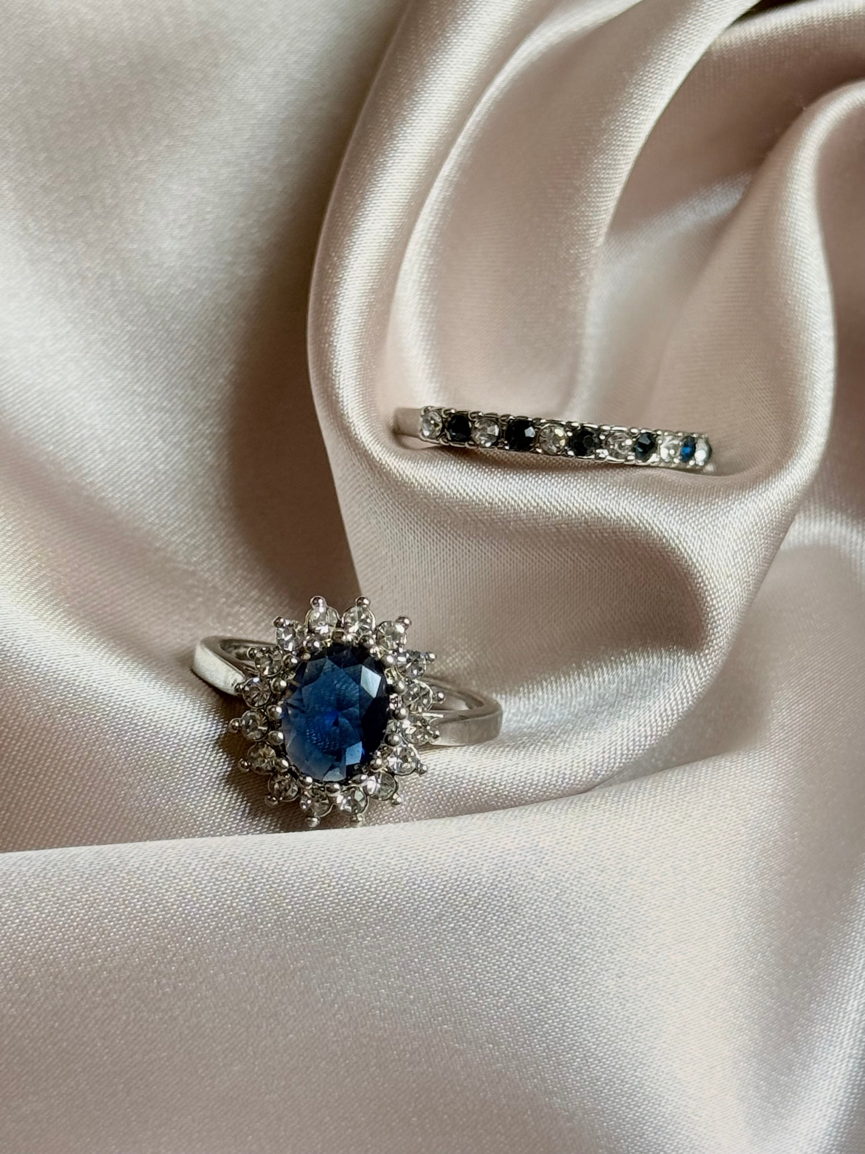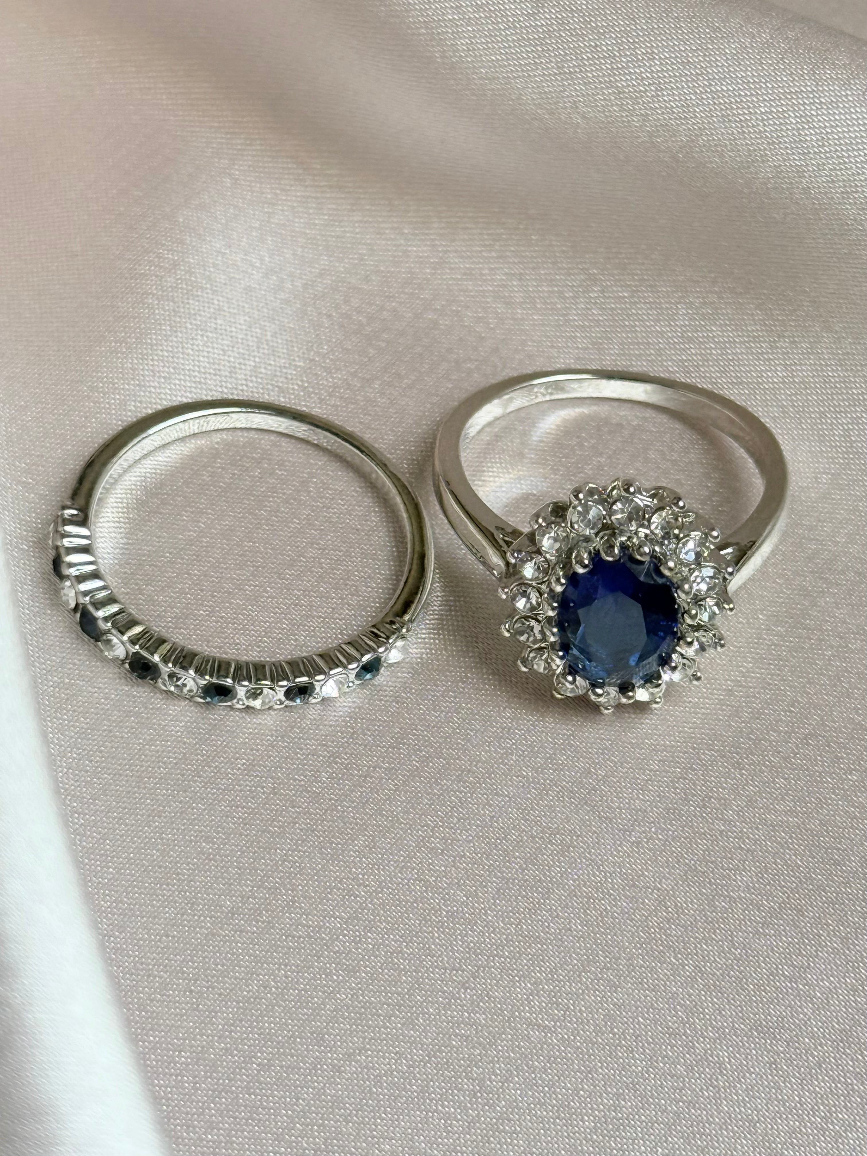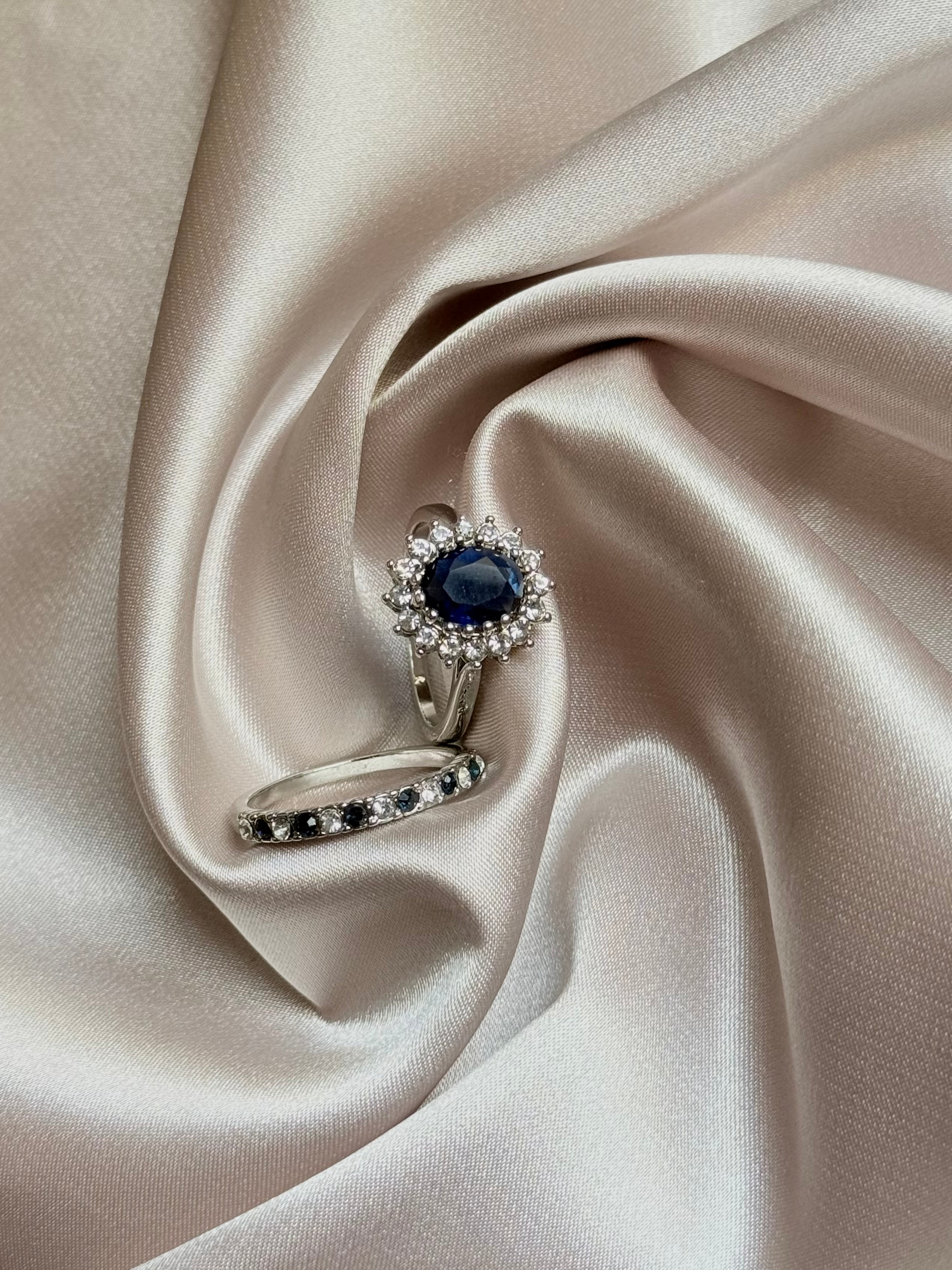 Exquisite Silver Color Flower Geometry Ring for Women Set Fashion Metal Inlaid Blue White Stones Ring Set