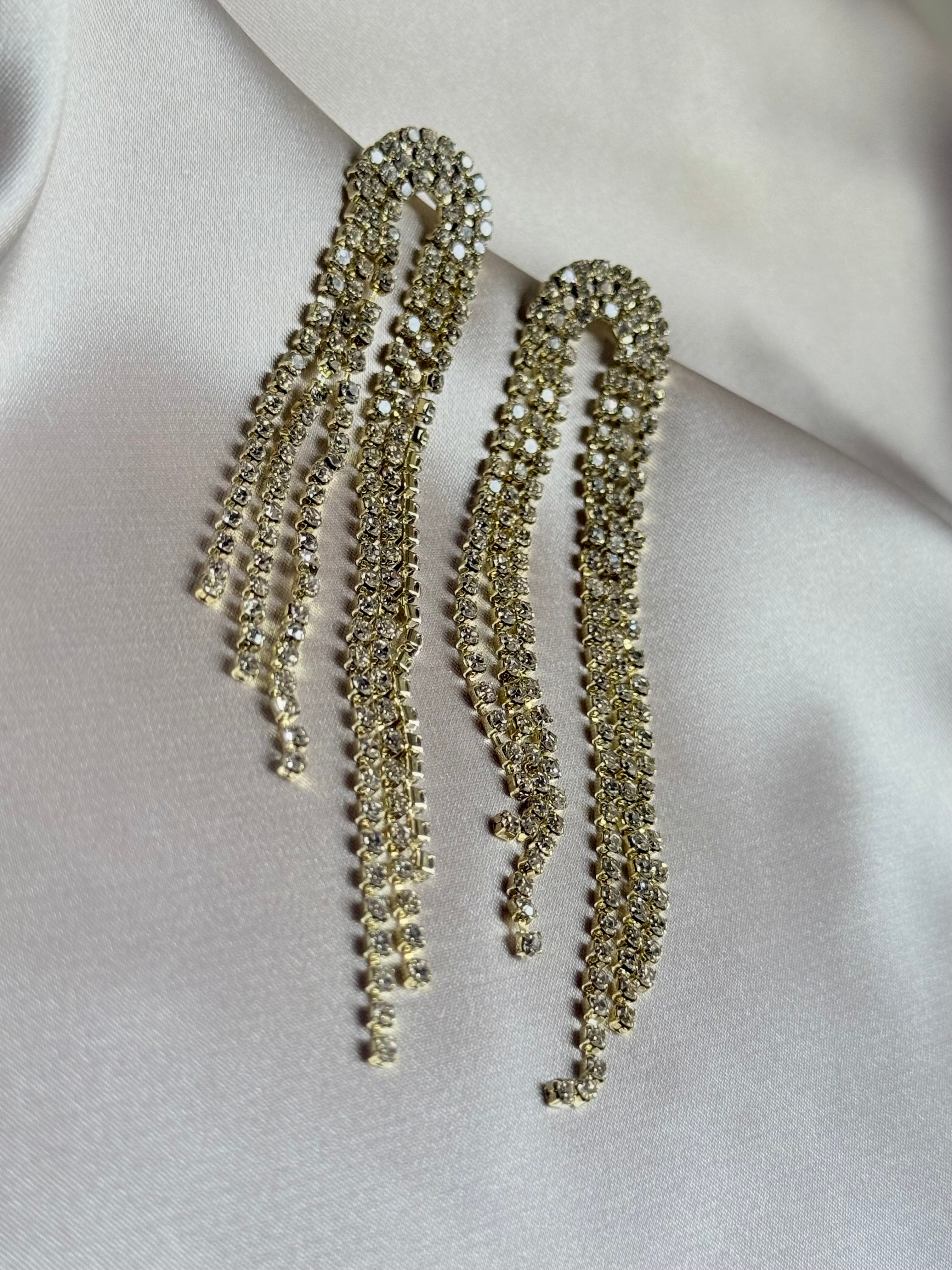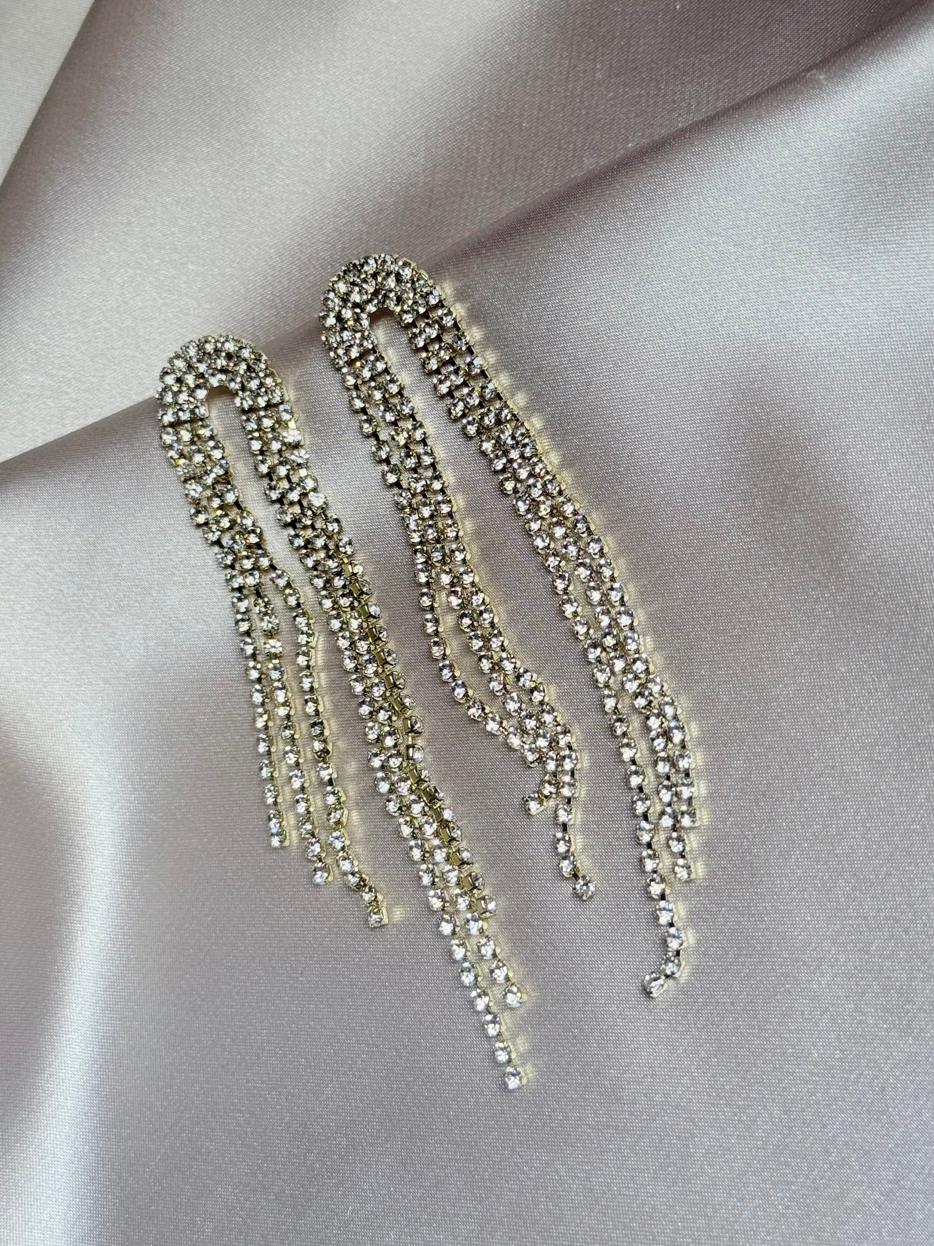Long Tassel Rhinestone Drop Earrings