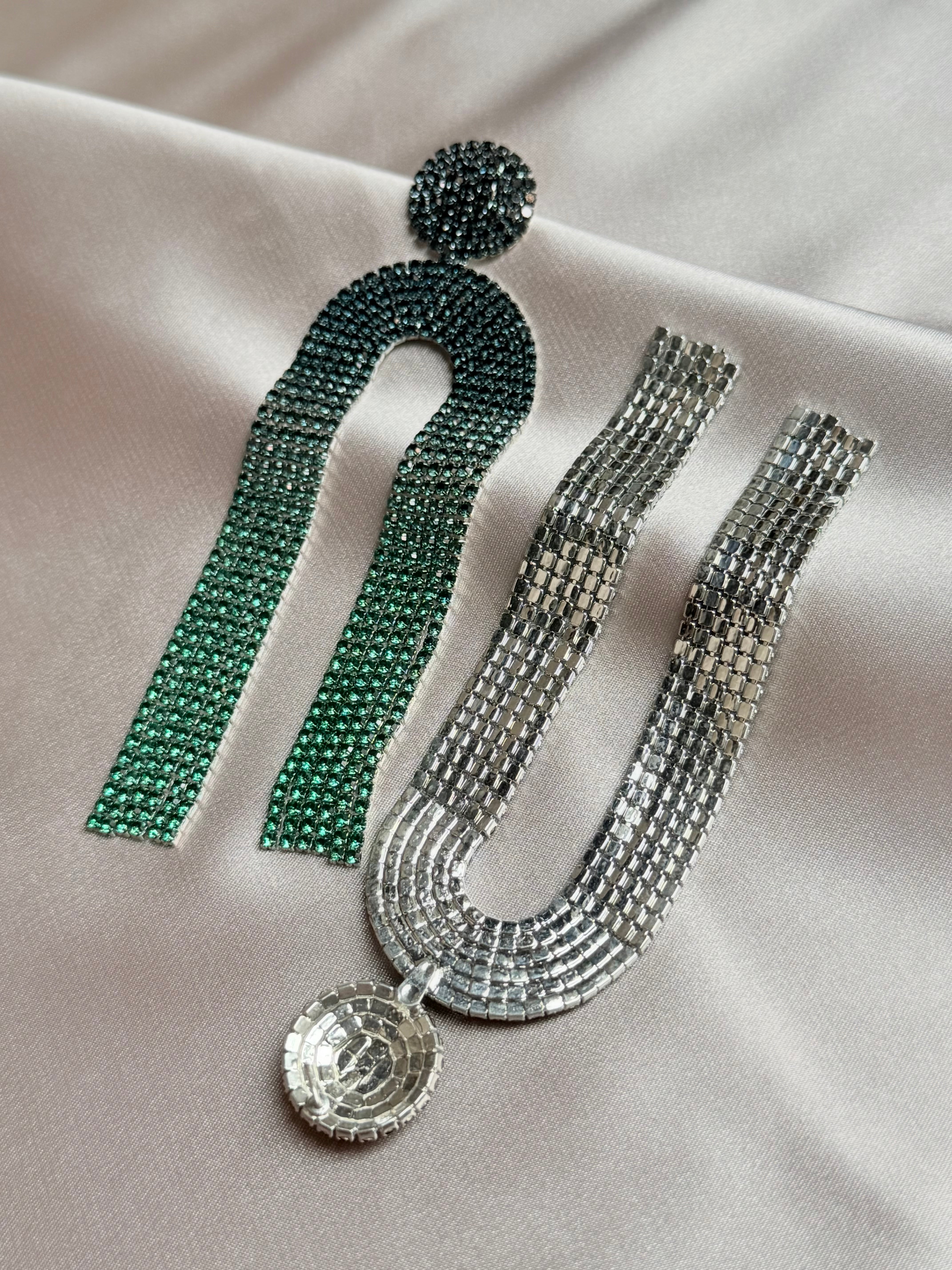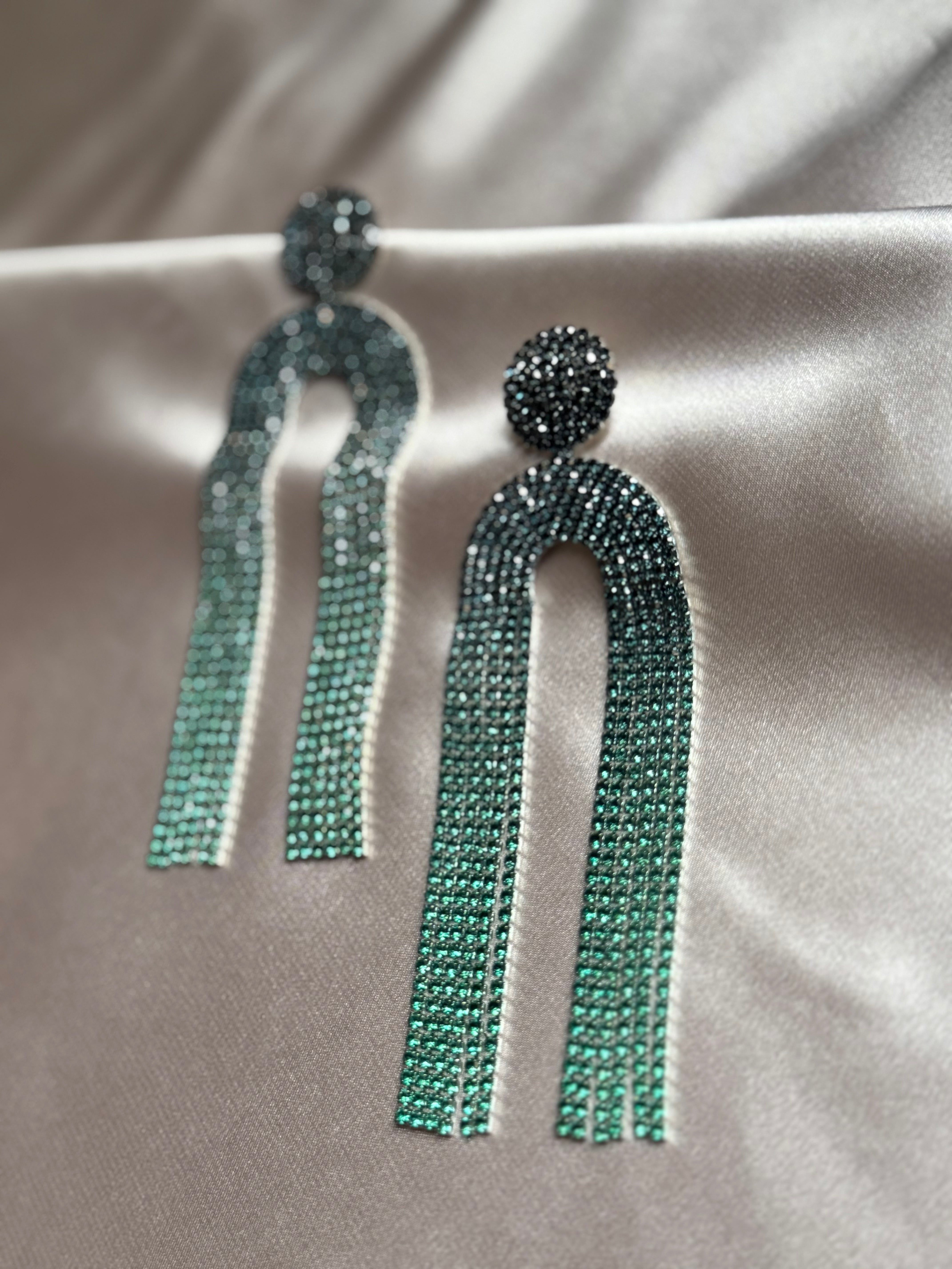 Luxury Rhinestone Green U-shaped Geometric Long Tassel Earrings