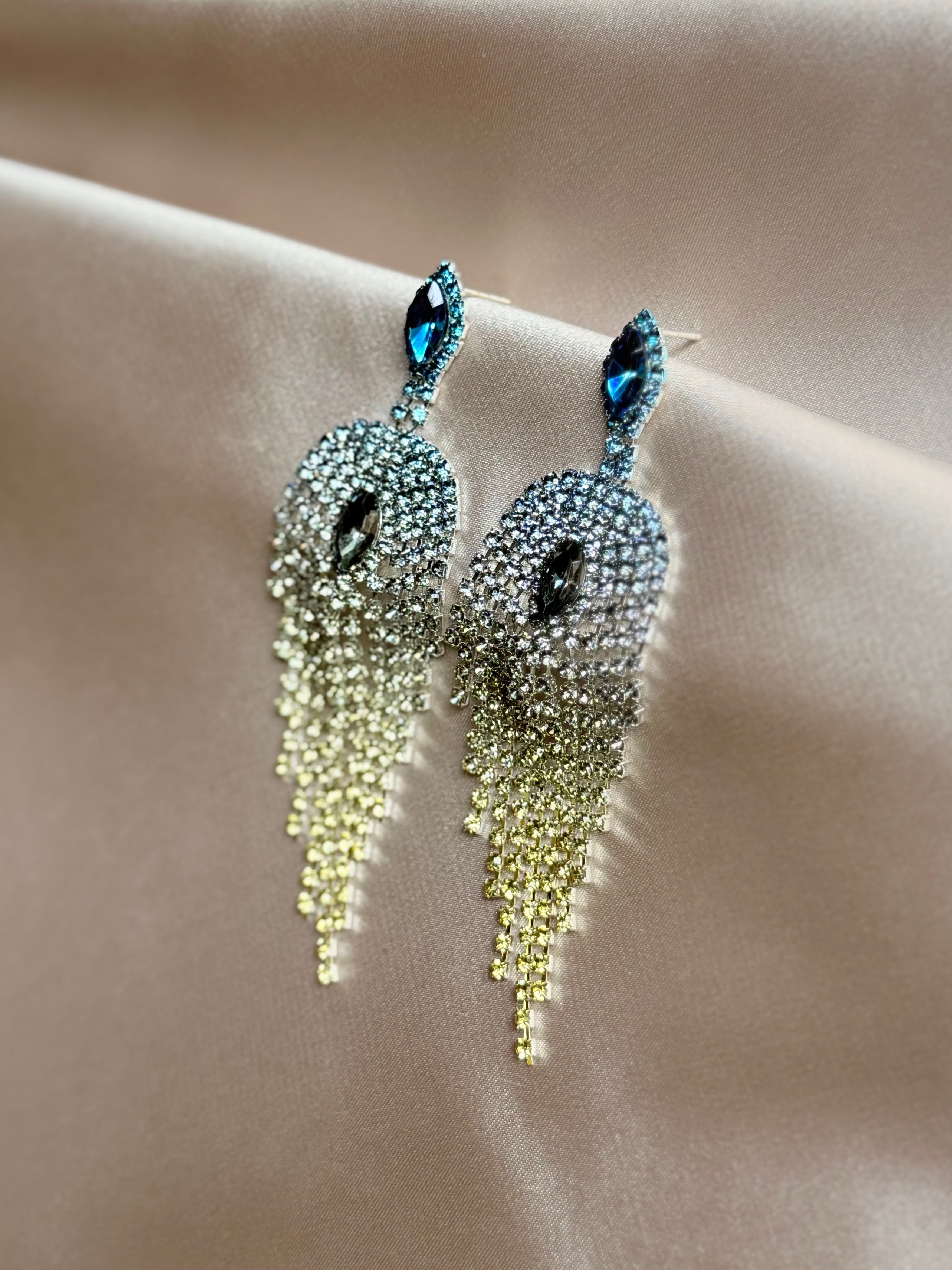 New Gradient Color Feather Full Drill Tassel Earrings Women High-End Feeling Water Diamond Earring Ear Jewelry Earrings